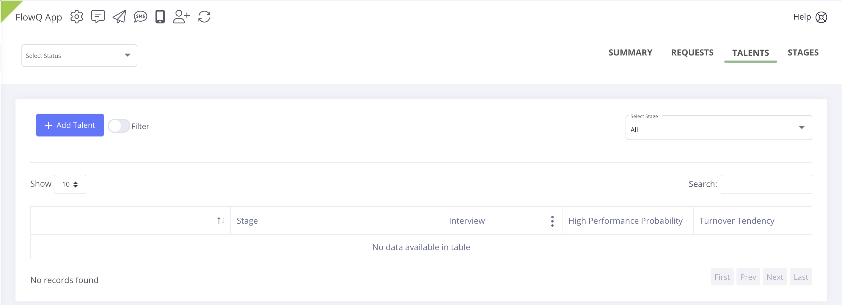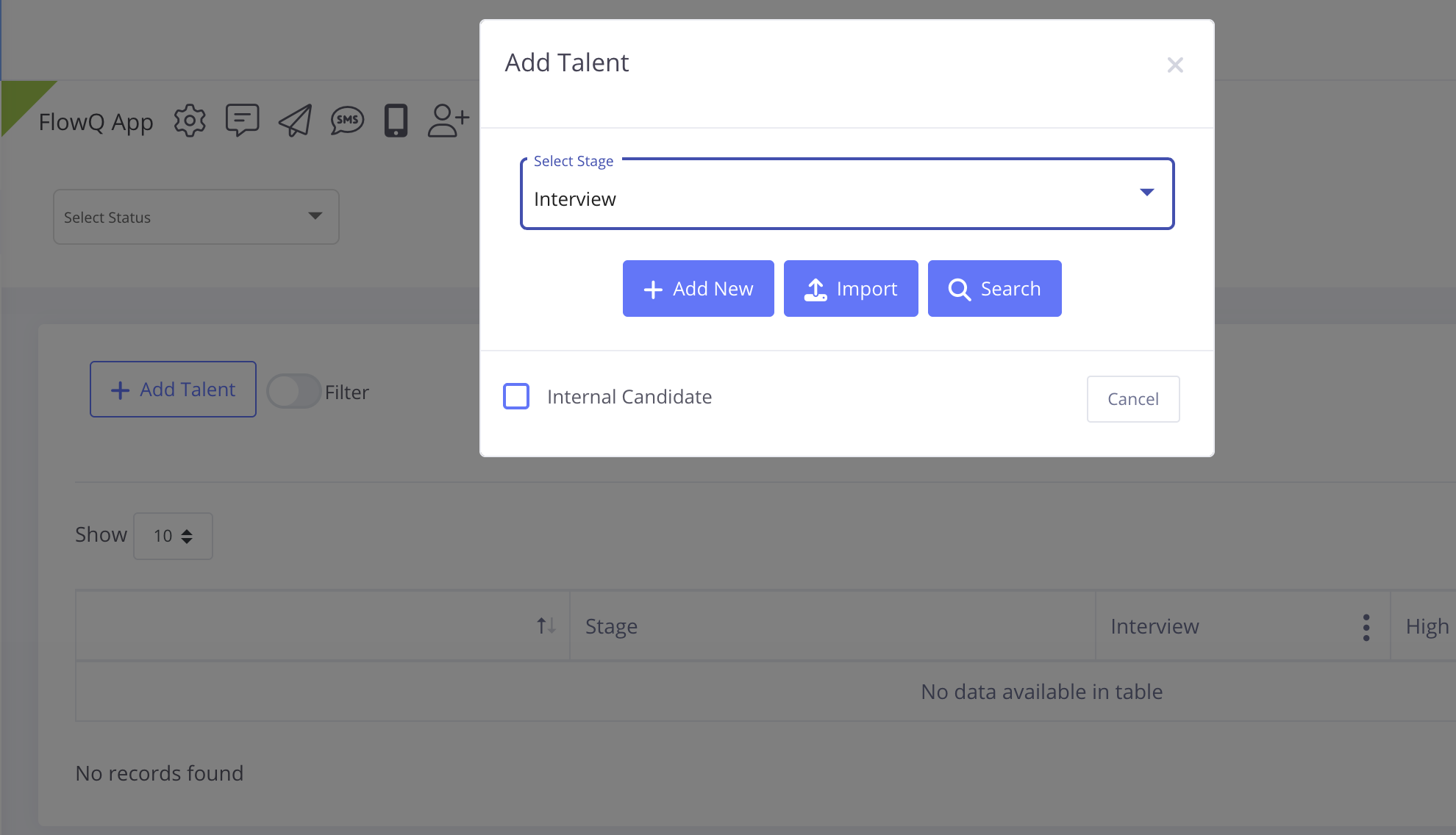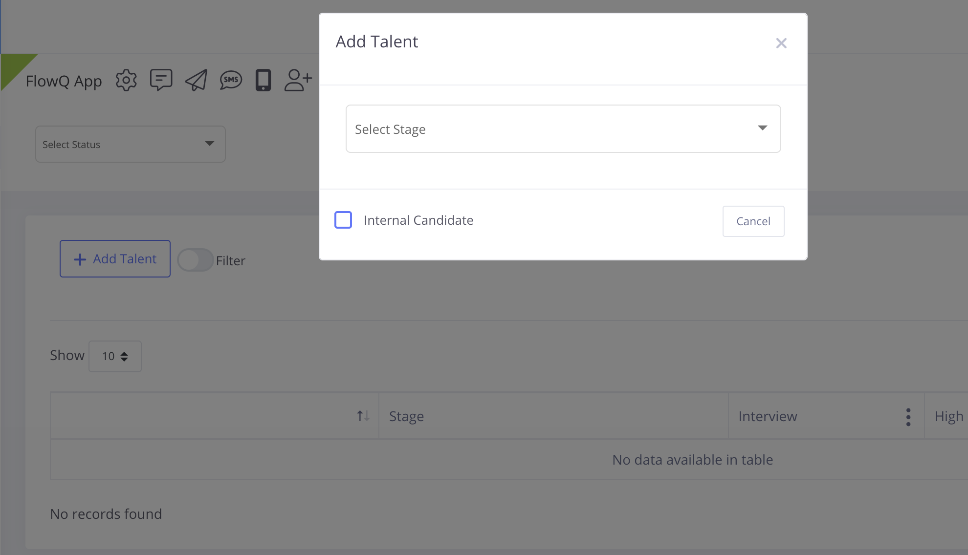 Once “Add Talent” button is clicked, “Select Stage” option appears where the respective stage can be selected.