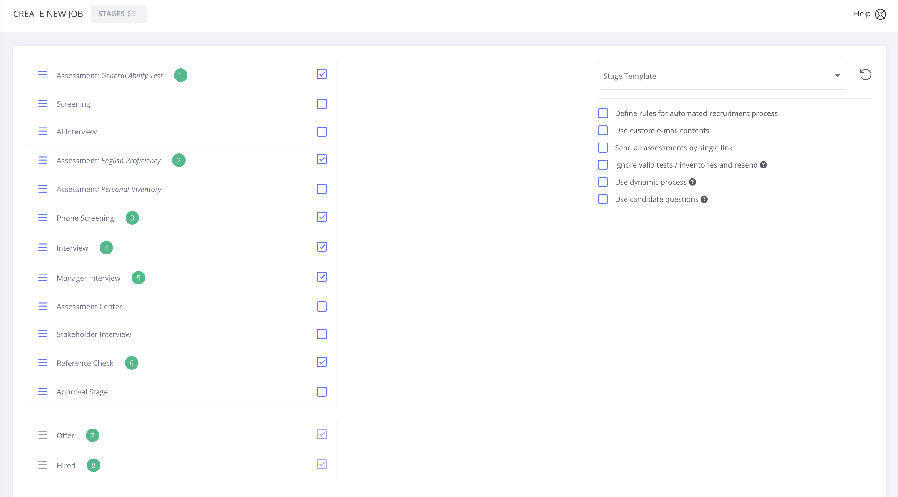 Stage Template enables the recruiter to quickly create frequently used stages.