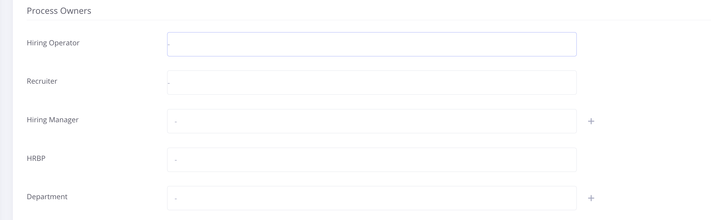 Hiring Operator, Recruiter, Hiring Manager and Unit fields should be filled under process owners area.