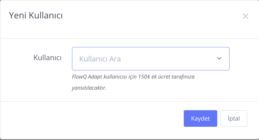 FlowQ Adapt programında kullanıcı eklenirken bir ücretlendirme bulunmaktadır.