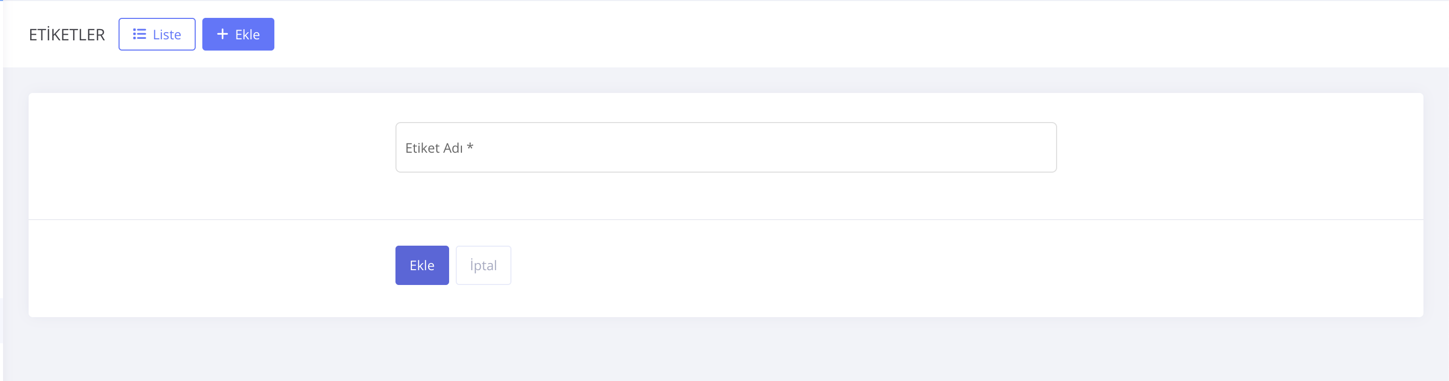 Etiketler, Liste ve Ekle bölümlerinden oluşur.