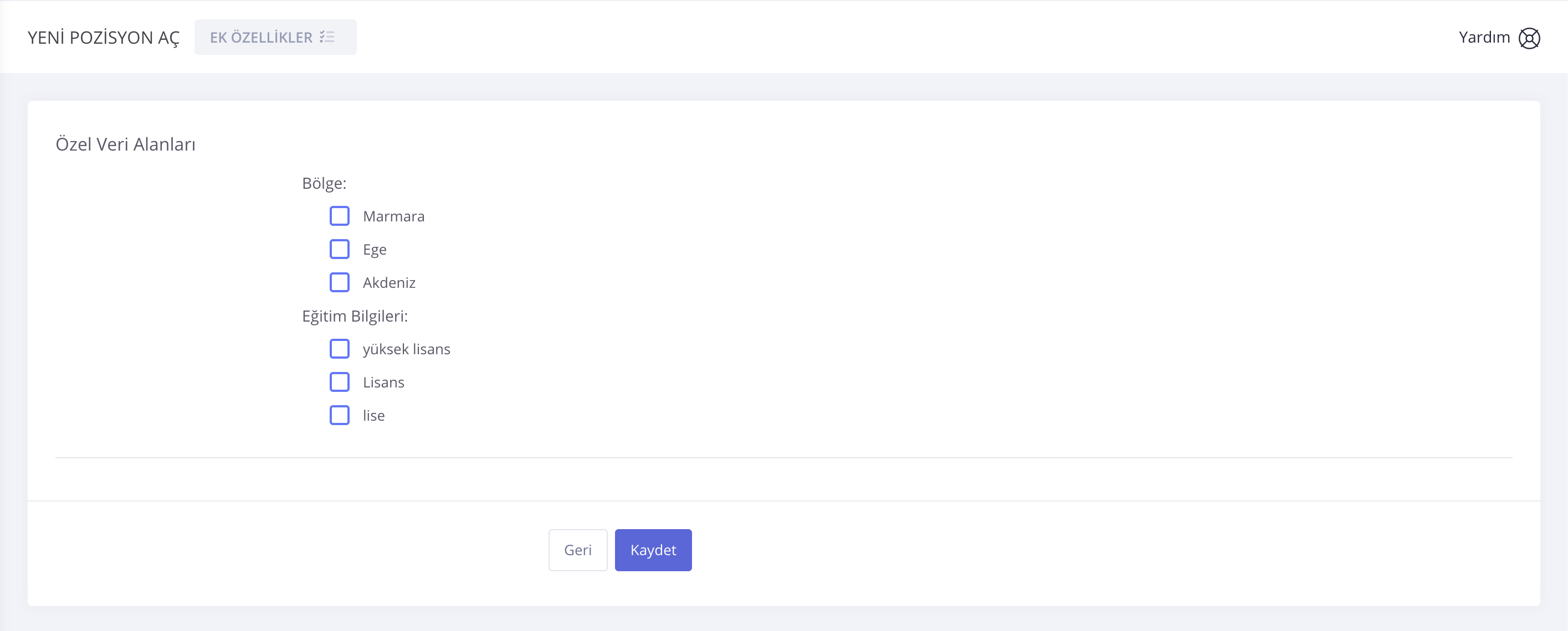 Pozisyonlar için oluşturduğunuz özel veri alanlarını yeni bir pozisyon açarken kullanabilirsiniz.
