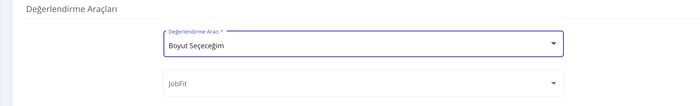 Belirli bir değerlendirme aracı seçildiğinde ise boyutlar seçili olarak gelir. Aşamalar adımında seçilmemiş ancak eklemek istediğiniz değerlendirmeler var ise ekleyebilir ve sıralayabilirsiniz. Dilerseniz sürece test ekleyebilirsiniz.